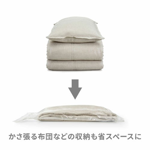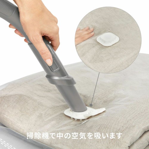 掃除機などで真空にさせて衣類などを圧縮することができます。