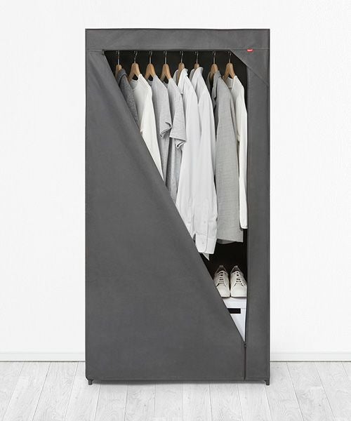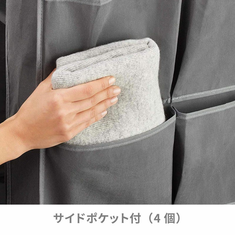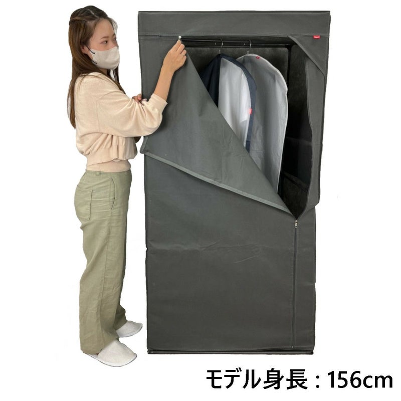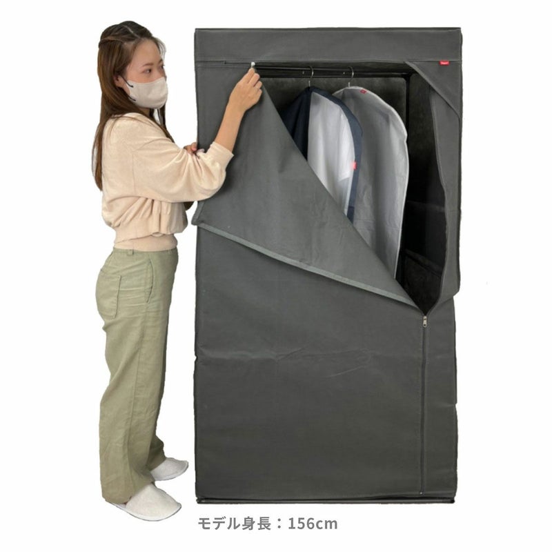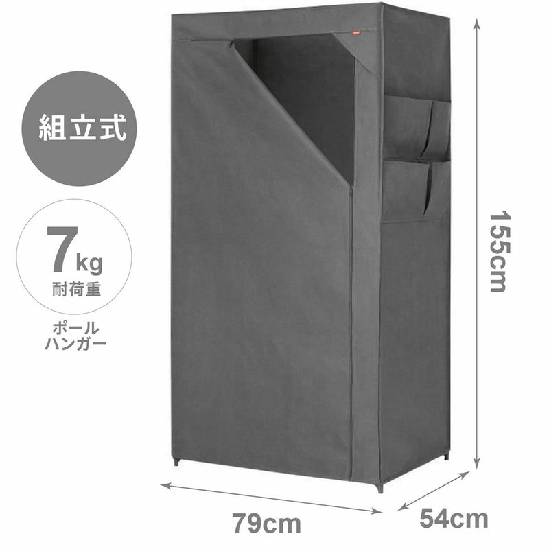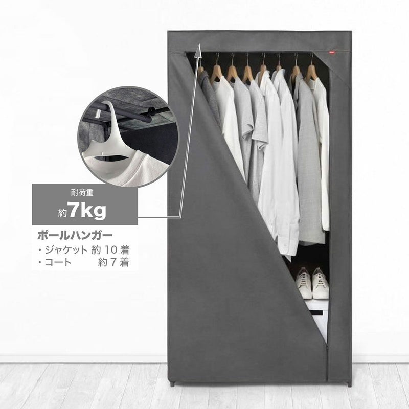 工具いらず、組み立て簡単ワードローブ。 大容量の収納力で、丈の長いコートやお気に入りの靴や鞄など、 省スペースでたっぷり収納可能。 外側サイドに付いている4つのポケットには、小物がすっきり収納できます。 底面スペースには、収納ボックスやシューズケースなども保管できます。 通気性の良い不織布カバーが、大切な衣類をホコリからしっかり守り、 日焼け防止・目隠し収納としても使えます。 寝室、リビングなどどこでも省スペースで設置ができ、らくらく移動が可能です。 不要な時は、バラしてコンパクトに折り畳むことができます。 耐荷重:ポールハンガー:約7kg