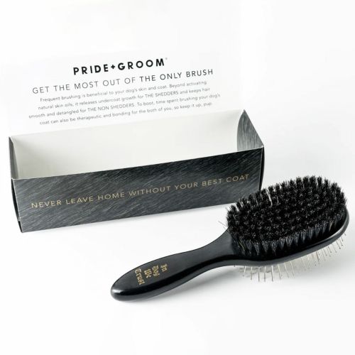 2wayで使える万能ブラシ♪ イノシシ毛でツヤ出し、スチールピンで被毛のもつれをほぐします。 【使い方】 ①スチールピン側のブラシで被毛の絡まりをほぐします。 ②猪毛のブラシで毛をなめらかにし、天然オイルで被毛を保湿します。