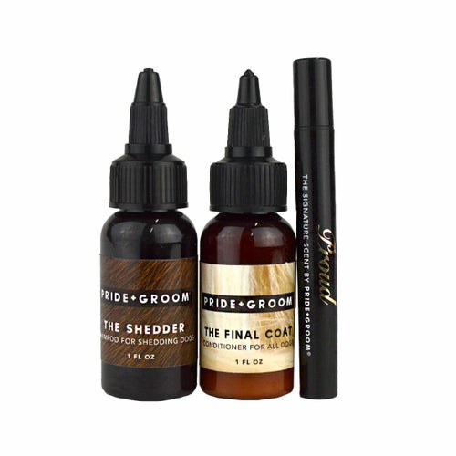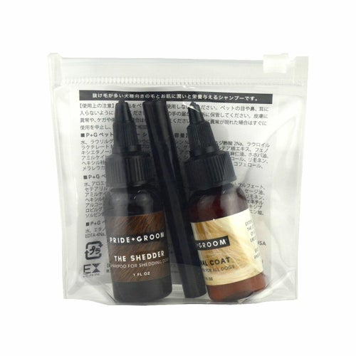 抜け毛が多いワンちゃん用のシャンプー、コンディショナー(各30ml)、ペットセント0.5mlのお試し用セット♪ PRIDE+GROOMの定番シャンプー・コンディショナー・ペットセントがお試ししやすいミニサイズになって登場! トラベルやちょっとしたギフトにもおすすめ♪ 【内容】 ・PRIDE+GROOM/ペットシャンプー シェダー30ml ・PRIDE+GROOM/ペット用コンディショナー 30ml ・PRIDE+GROOM/ペットセント 0.5ml 【使用上の注意】 本製品をペット以外に使用しないでください。 ペットの目や鼻、耳に入らないようにご注意ください。 お子様の手の届かない所に保管してください。 皮膚に異常や、ケガや傷がある場合は使用をお控えください。 皮膚に異常が現れた場合はすぐに使用を中止し、獣医師にご相談ください。