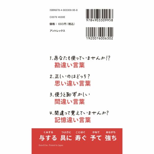 大人でもまちがいやすい日本語表現や漢字を1冊にまとめ、正しい日本語をすらりと言える、読める、洗練された大人になるためのバイブル。 発行:アントレックス