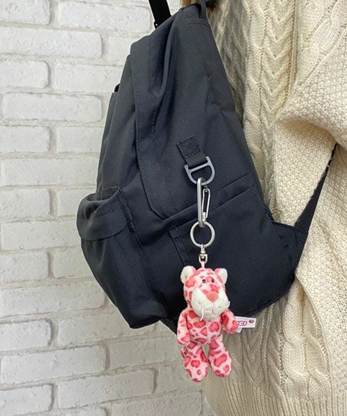 こちらは 、ぬいぐるみの肌触りをそのまま残した、レパード/ピンク のキーリングです。