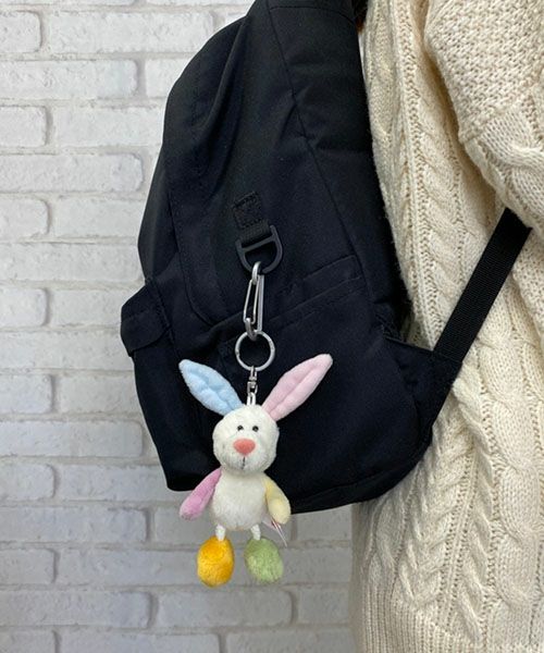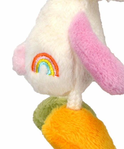 こちらは、ぬいぐるみの肌触りをそのまま残したレインボーラビットのキーリングです。おしりには虹の刺繍入り♪