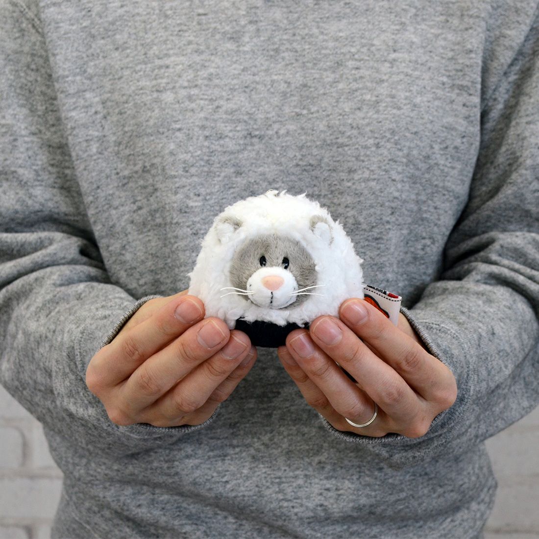 こちらは、ぬいぐるみの肌触りをそのまま残したキーホルダー オニギリ グレーキャット 8cmです。