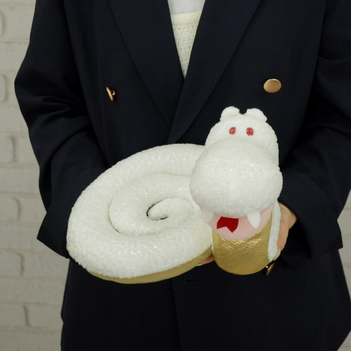 こちらは、ヘビ2025 ホワイト×ゴールド 25cmのぬいぐるみです。