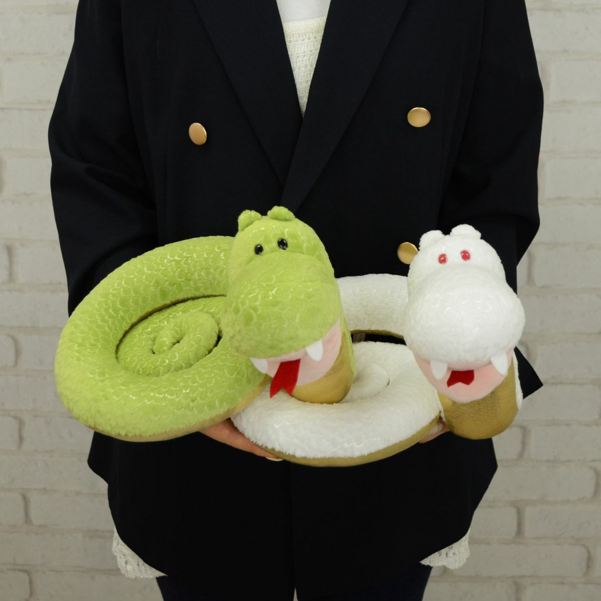 そして、ぬいぐるみはスタンダード色のグリーンのヘビと、縁起の良さではトップクラスの白ヘビの2色展開です。