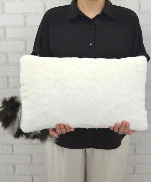こちらは、ぬいぐるみの肌触りをそのまま残した、ラクーンの 43cm×25cmのクッションです。