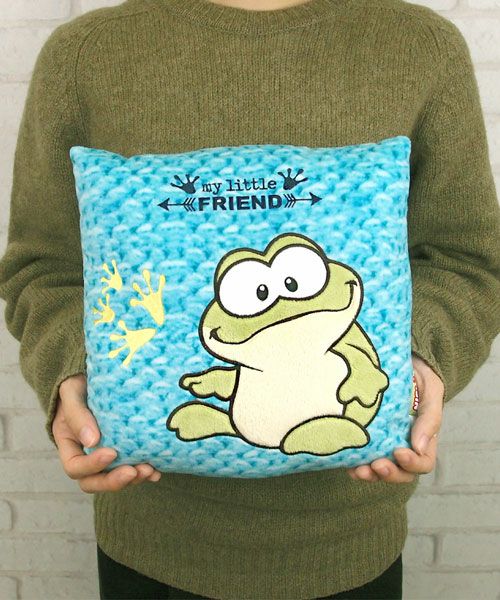 こちらは 、クラシックベア22 フロッグの刺繍が施された正方形タイプのクッションです。