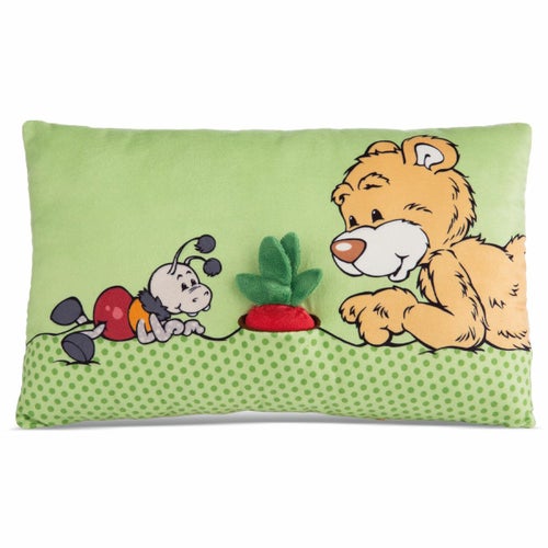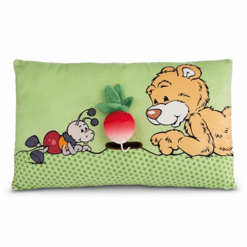 こちらは、ぬいぐるみの肌触りをそのまま残した、クラシックベア2024 クッション ベア+ラディッシュ43×25cmの長方形クッションです。