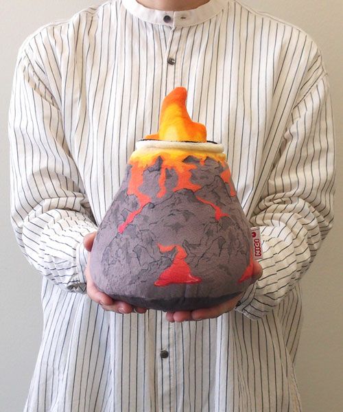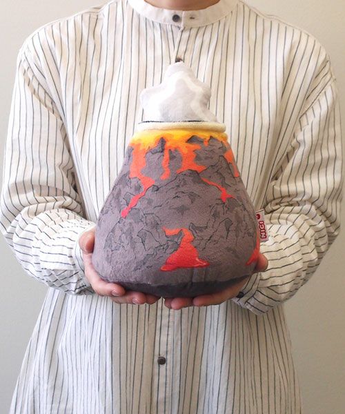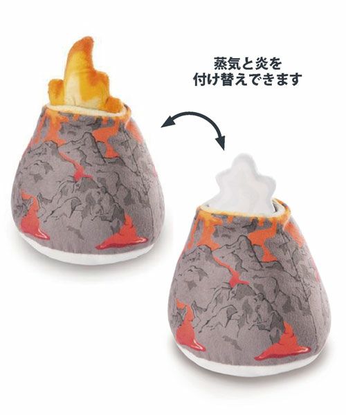こちらは、火山をモチーフにしたぬいぐるみです。付属の蒸気と炎を付け替えできます。