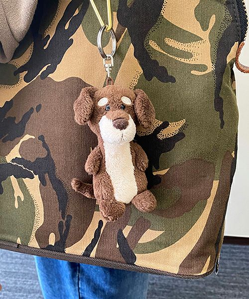 いつもフレンドリーなゴールデンレトリバー、小さいけど勇敢なダックスフント、甘えん坊のダルメシアンの三匹は、子犬の頃からいつも一緒。たまにケンカもするけれど、いつの間にか仲直り。お化け屋敷やジェットコースターだって、三匹一緒ならへっちゃらさ! こちらはぬいぐるみの肌触りをそのまま残した ダックスフントのキーリングです。