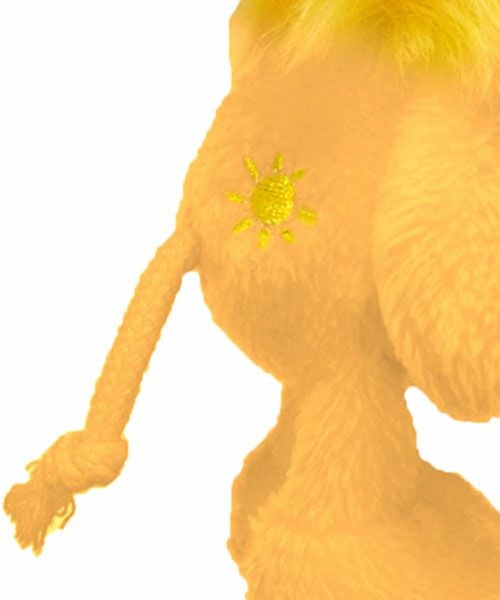 こちらは、ぬいぐるみの肌触りをそのまま残したサニーライオンのキーリングです。おしりには太陽のマークの刺繍入りです♪