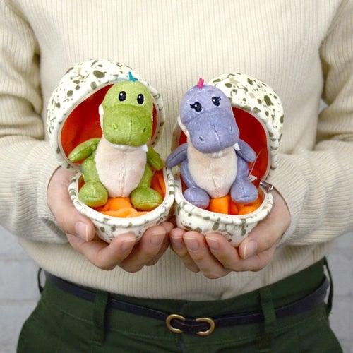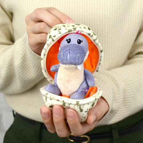 こちらは、ぬいぐるみの肌触りをそのまま残した、ベビー・ディノ+タマゴ/ガール 13㎝のビーンバッグ(キーリング)です。