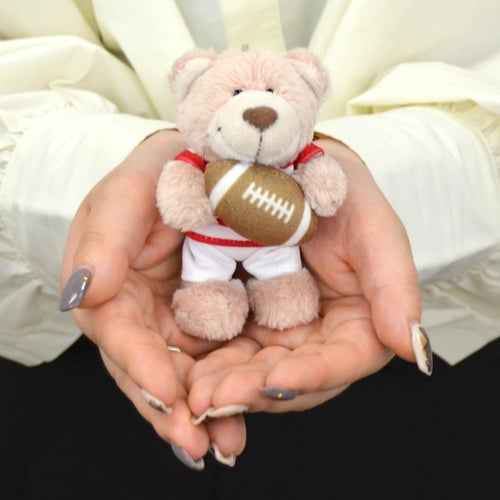 こちらは、ぬいぐるみの肌触りをそのまま残した、ラブベア/ラグビー 10cmのキーホルダーです。