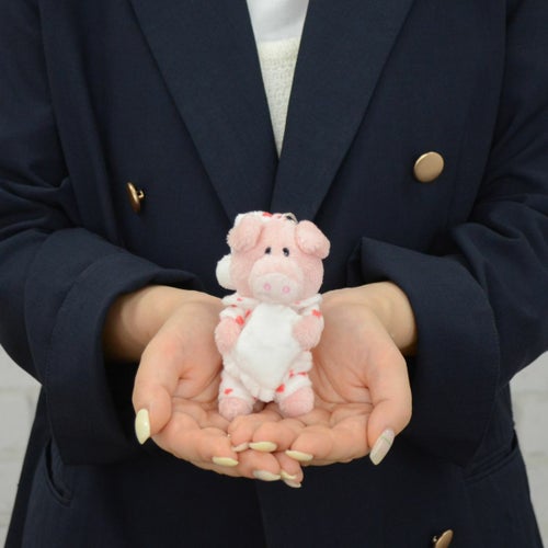 こちらは、ぬいぐるみの肌触りをそのまま残した、ピンクピッグハートパジャマ10㎝のキーホルダーです。