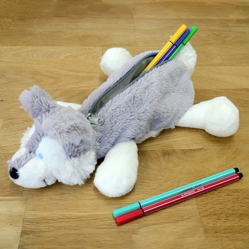 こちらは、ぬいぐるみの肌触りをそのまま残したシベリアンハスキー フィギュアポーチです。