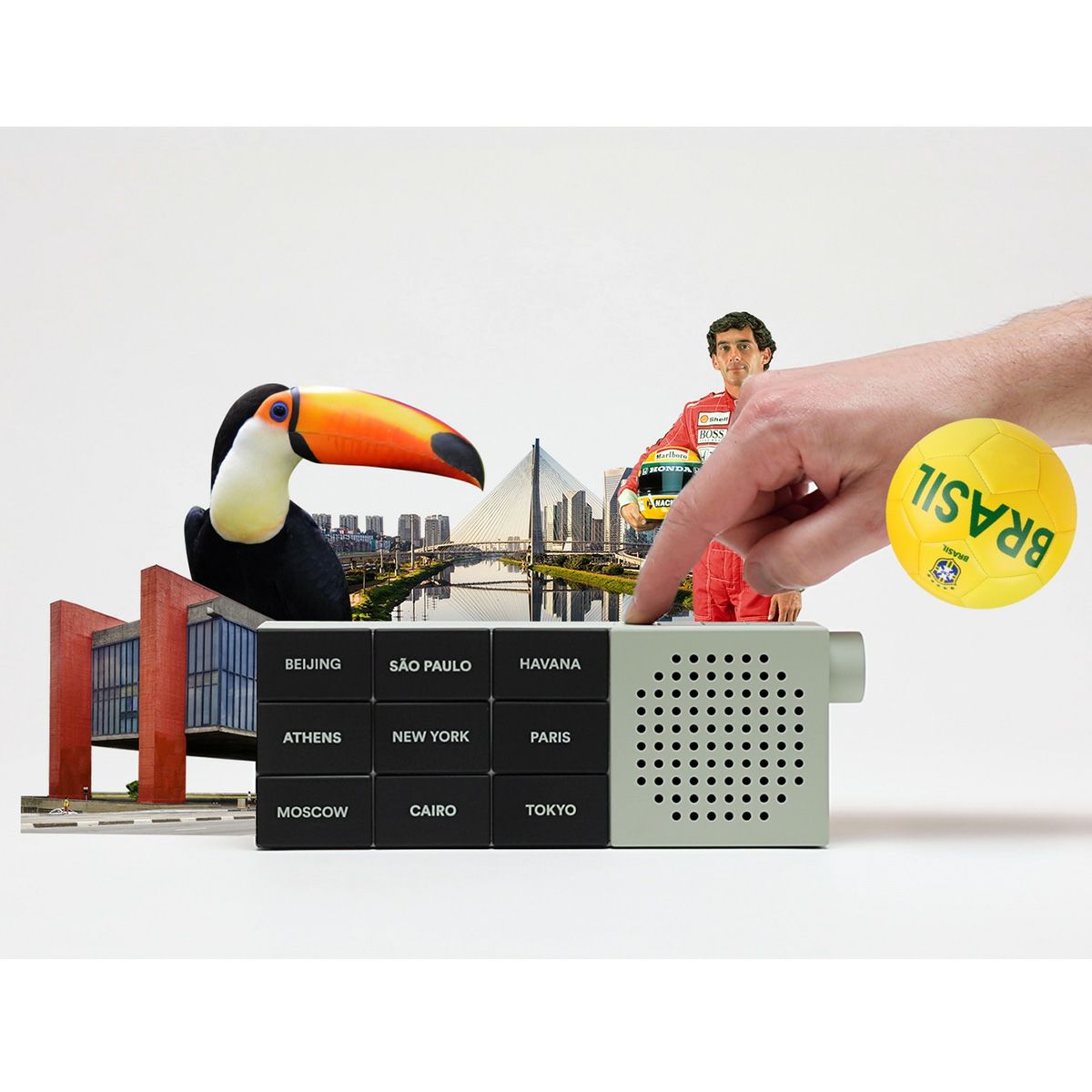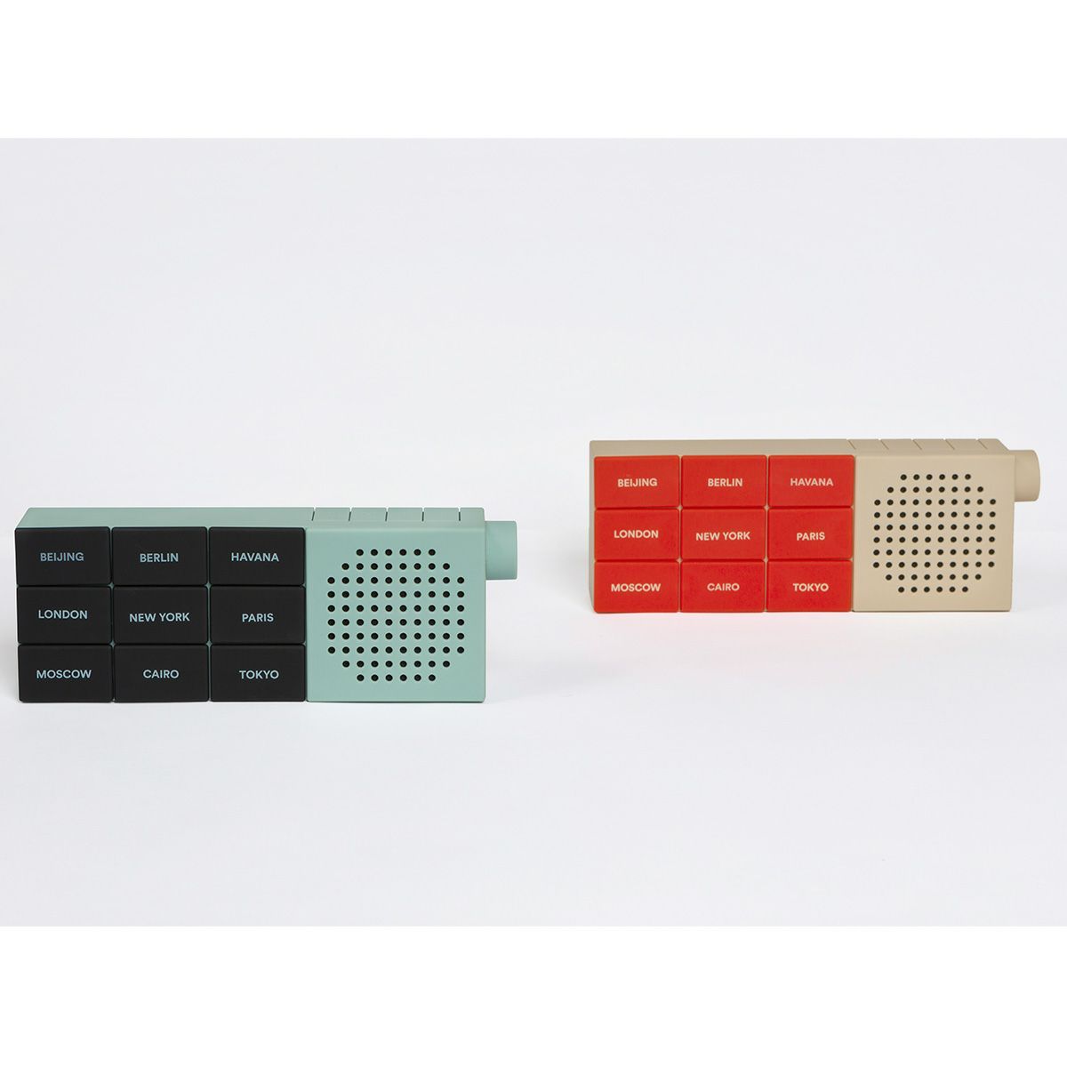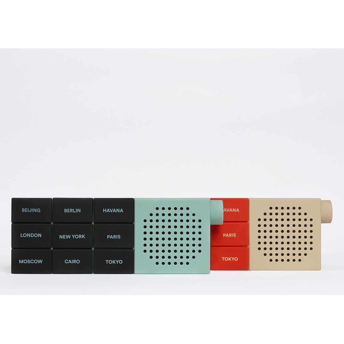 スマートフォンの専用アプリをダウンロードし、Bluetooth と接続。海外のラジオ番組を良い音質でお楽しみいただけます。18 の都市名が書かれたボタンパネルは、マグネットなので簡単に取り外しができ、自分好みに都市をセレクト・カスタマイズできます。