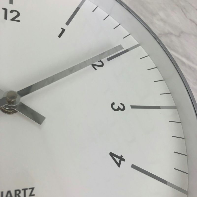 縁と針はシルバーメタルで、文字盤はガラスで覆われています。