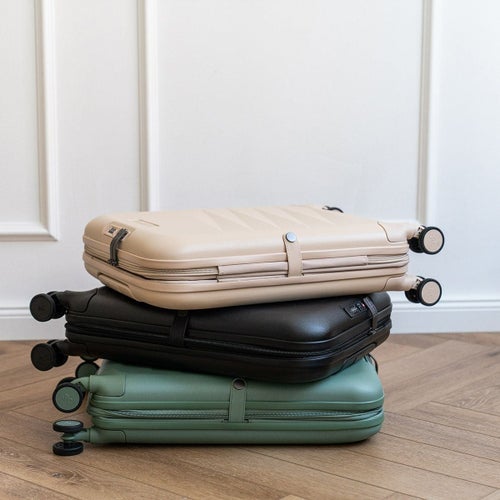 ラグジュアリーなデザインと落ち着いたペールカラーを採用したハイエンドライン。ポリカーボネートのハードシェルで耐久性と軽量感を両立しました。使わない時は厚さ約11.5cm〜16.5cmに折り畳んで隙間に収納可能です。