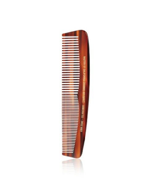 髪の毛用クシ(13cm)耐熱温度:65度<使用上の注意>●高熱のドライヤー、熱湯はさけて下さい。●吸水性があるため、長時間湿度の高い所に置かないで下さい。●汚れは中性洗剤を薄く溶かしたぬるま湯ですばやく洗い、すすいだ後水気をよくふき日陰乾燥させて下さい。 スイスで手作りされたBaxter of Californiaのクシは、高品質のセルロース・アセテートシート(天然で綿と木のパルプセルロース由来のポリマー)から出来ています。切り出しから研磨まで、(すべて人の手による)12段階の細かい製造工程を経たクシは、滑らかで丸みのある歯を持ち、髪と地肌を快適にケアします。