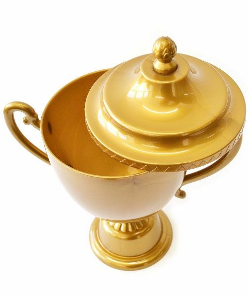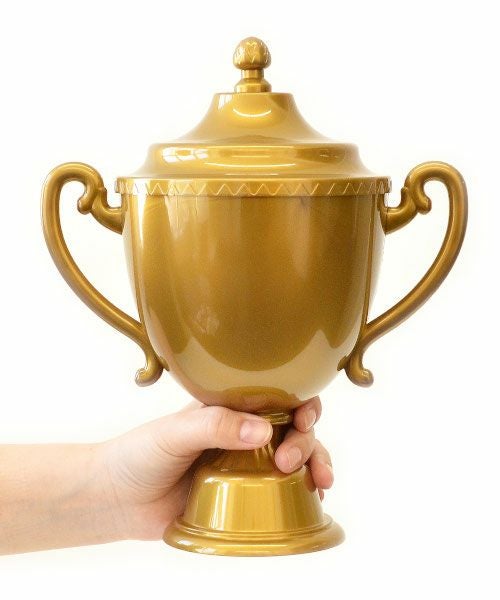 面白いデザインの小物入れだったので購入しました。 価格が安いのも良かったです。 スポーツ選手を応援しているので目に留まったのかもしれません。 お気に入りの選手のTシャツを吊るしていて、その前にこのトロフィーを置いて飾っています。 まだ何も入れていませんが、飾っているだけで楽しめる商品です。