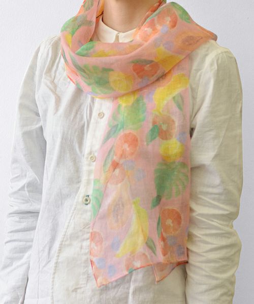 • 麻フルーツ柄プリントストール ピンク 在庫切れ
