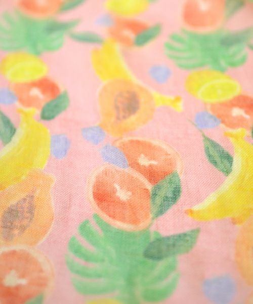 【SALE】 麻フルーツ柄プリントストール ピンク/gredecana(グリデカナ)
