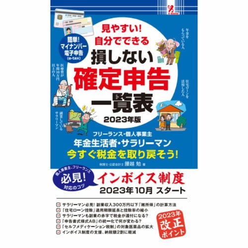 毎年確定申告を行うフリーランス、個人事業主はもちろんですが、不要と思っているサラリーマンや主婦も実は確定申告をする方がずっとお得な場合が…。 2023年版は個人事業主、フリーランスには必見のインボイス制度や、マイナンバーカードを利用したe- tax申告について詳しく紹介。 スマホ片手に簡単申告しては?損しない確定申告のススメを本書が解説! 著者:腰越勉