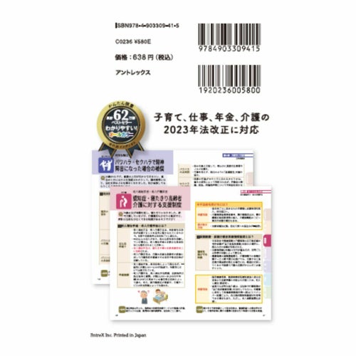 毎年内容を更新している本書は、発行累計62万部。 法改正に伴い変わった大きなトピックのインボイス制度、新NISA制度、残業に対する割増賃金、年金についても解説! オールカラーの一覧表形式で、世代別インデックスから簡単検索も可能。 監修:特定社会保険労務士 小泉正典・ 西岡佳誉子
