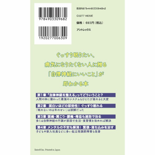 「なんとなく不調」「夜眠れない」「朝起きれない」…それ、自立神経の乱れかも。 本書は体内環境やメンタルまで司るこの神経にひたすらいいことを紹介! イラ~っ、としたら口角を上げて!副交感神経が優位なって落ち着きます。