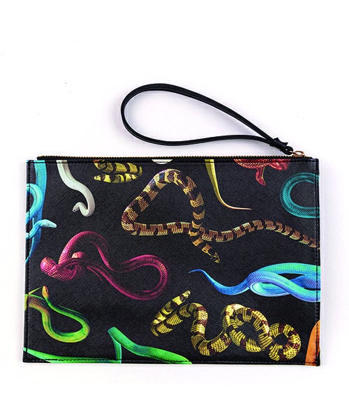 SELETTI X TOILETPAPERのコラボレーションに、ポーチバッグが登場!カラフルで、ブラックユーモア満載のデザインが、ファッションのアクセントに。