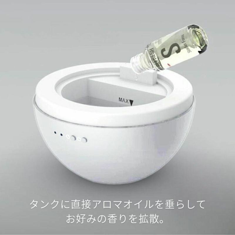 連続稼働約8 時間の超音波式アロマディフュー ザー。インターバルモードを搭載し、間隔をあける ことで連続運転より長時間稼働します。10 分運 転、20 分電源オフ、10 分運転の間隔で稼働し、 24 時間連続でご使用いただけます。 スタイリッシュなアロマディフューザー。 アロマオイルたった2滴で、お好みの香りが24時間持続。 消費電力:7.2W OFF-ON -インターバル機能付き(10分の運転後20分の停止の機能) 連続運転時間:ノーマル…8時間 インターバル…24時間 タンク容量…100ml