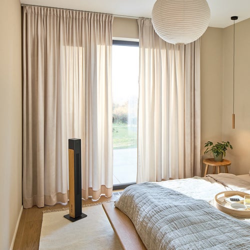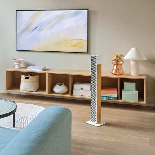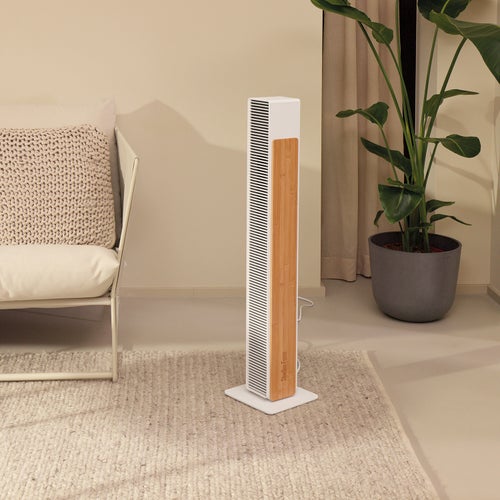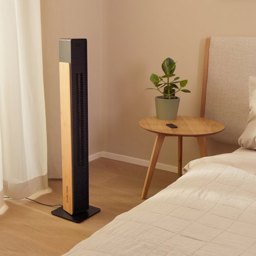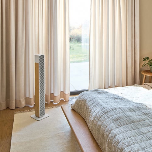 インテリア性の高いバンブー素材と、徹底した静音設計。寝室からリビングまで、あらゆる空間に溶け込む新しいタワーファンです。