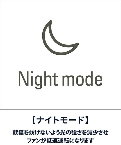 睡眠を妨げないよう光の強さを減少、ファンが低速運転になります。