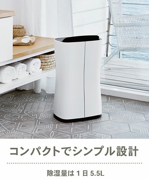 除湿量は1日5.5ℓ。湿気の多い季節でもパワフルに乾燥します。