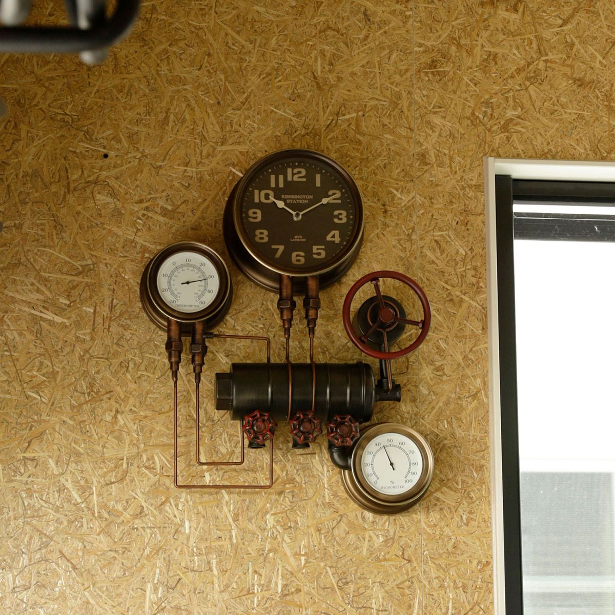 ボイラー室のスチーム管やスチームメーターなどスチームパンクなモチーフのウォールクロック。 時計のほか、温度計と湿度計が付いています。 存在感のあるデザインなので、一つあるだけでお部屋の雰囲気がレトロクラシックな印象に。 本製品は、一つずつハンドメイドで溶接、加工しております。 ヴィンテージの雰囲気を出すために、塗装ムラや細かなキズも雰囲気の一つとしております。あらかじめご了承ください。 *こちらの商品はラッピング対応不可となります。予めご了承ください。 保証期間:6ヶ月