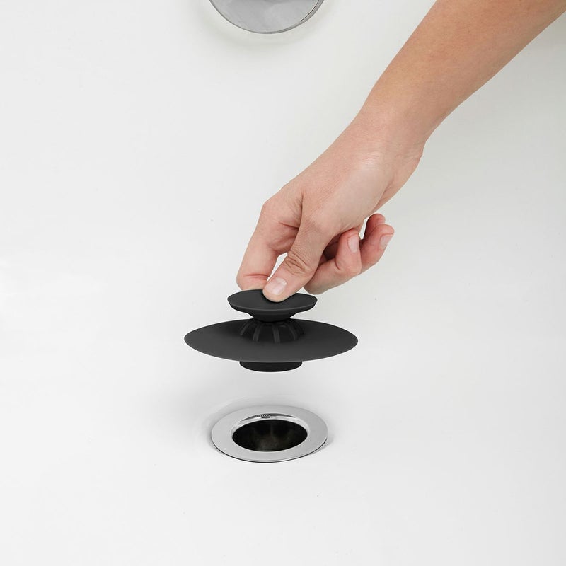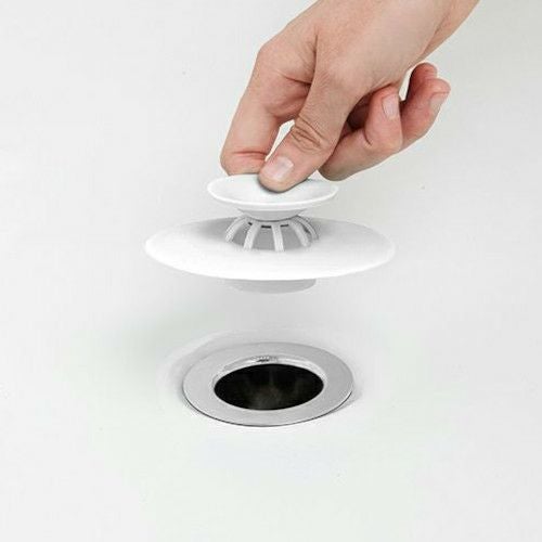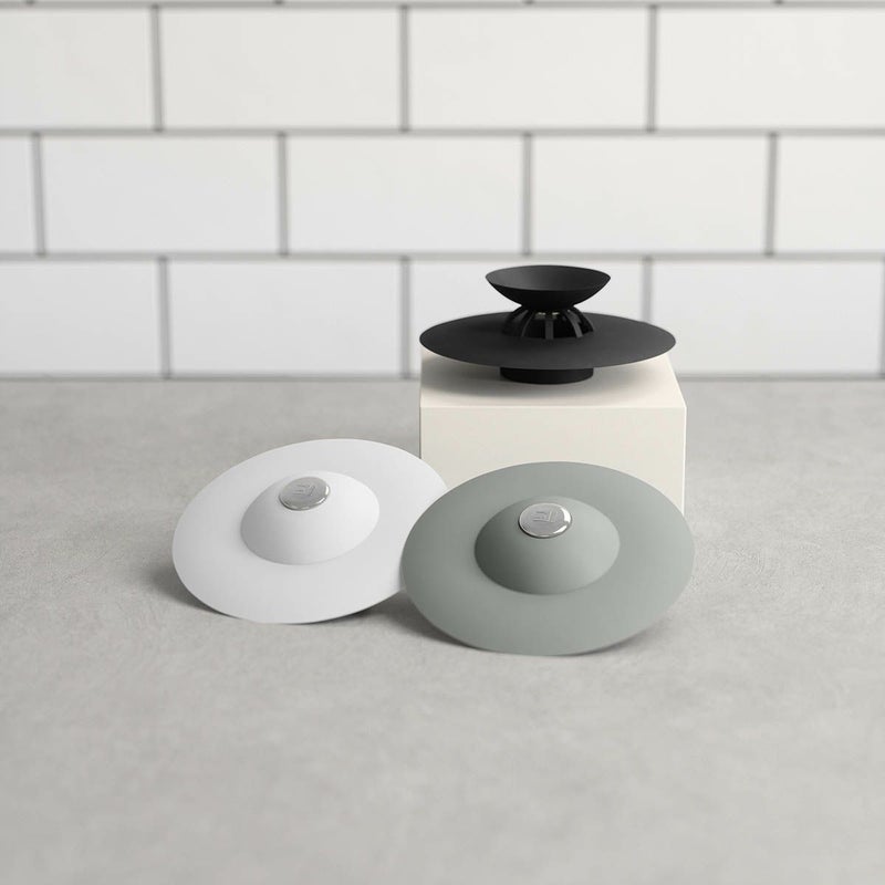 Alan Wisniewski & Anthony Keelerデザイン。 風呂栓とヘアキャッチャーがワンタッチで切り替え可能なバスグッズ。 中央のボタンを押せば上部パーツが開いて水が流れ、ヘアキャッチャーになります。ひっくり返った縁を押して閉じれば風呂栓になります。 ユニットバスでの使用もおすすめです。