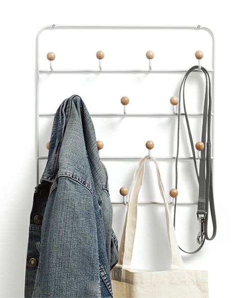 壁に取り付け、ドアに取り付けが選べる2WAYのフック兼収納グッズ。ウッドとスチールのシンプルな素材でインテリアに溶け込みます。