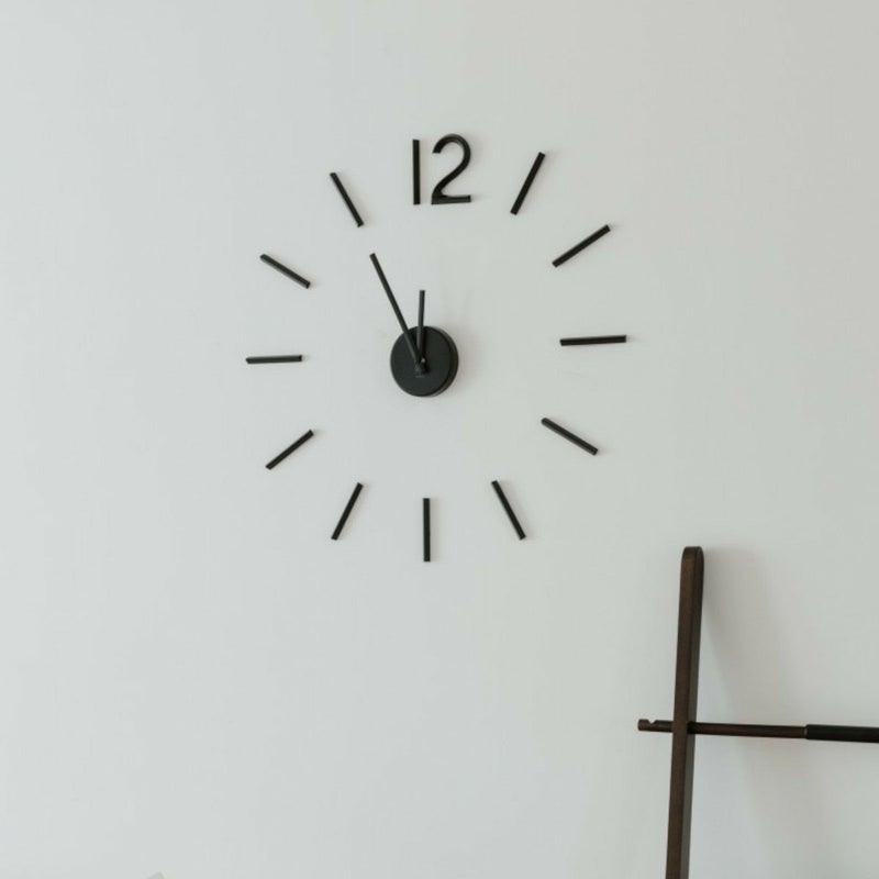 壁へ貼るウォールクロック:ブリンクウォールクロックには、ネジや釘で壁に取り付けるムーブメントと、金属製の棒状の目盛りを壁に取り付ける為の3Mシールが付属しています。時計は電池式です(電池は付属されていません)、単三電池が1本必要です。