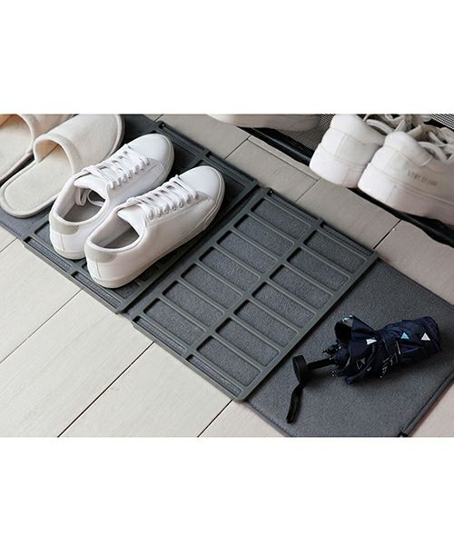 Eugenie de Loynes & Edourd Lauriaultデザイン。簡単に水分を吸収し、速乾性の高い4足収納可能なシューマット。トレイが2つ付属しておりますので、空気を循環させ、マットの底に水や泥が溜まりません。雪や雨が降った時などに最適です。トレイはマットから簡単に取り外しが可能です。折りたたむこともできますので使用してない時には収納にも困りません。マットは洗濯機で洗うことができますので、メンテナンスが簡単で、一年を通して清潔に保つことができます。玄関以外のお部屋にも最適です。