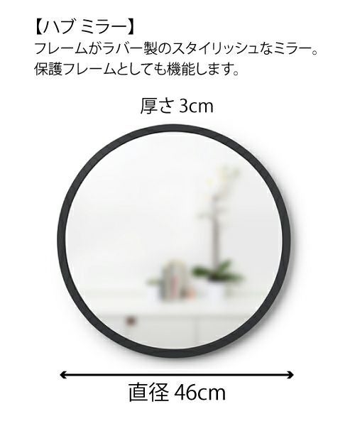 シンプルで機能的!モダンなミラー。 Umbraのハブ ミラーは、どんな部屋に置いてもファッショナブルにマッチします。革新的なラバーフレームにより、他のウォールミラーよりも耐久性が高く、モダンでスタイリッシュです。大きな鏡は自然光と人工光を集め、部屋を広く明るく見せます。ハブ ミラーは、どんなインテリアスタイルにも合わせやすい、シンプルなデザインです。