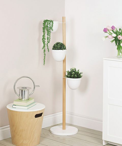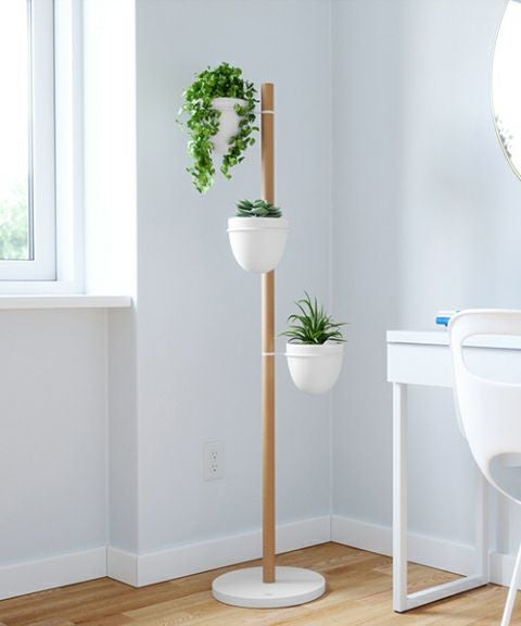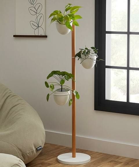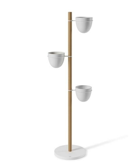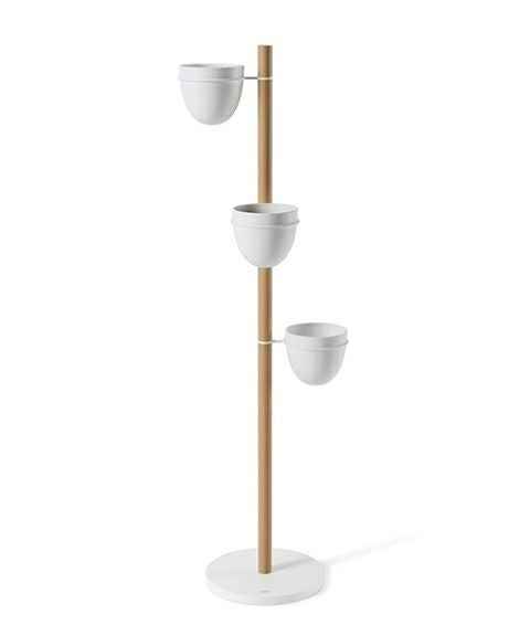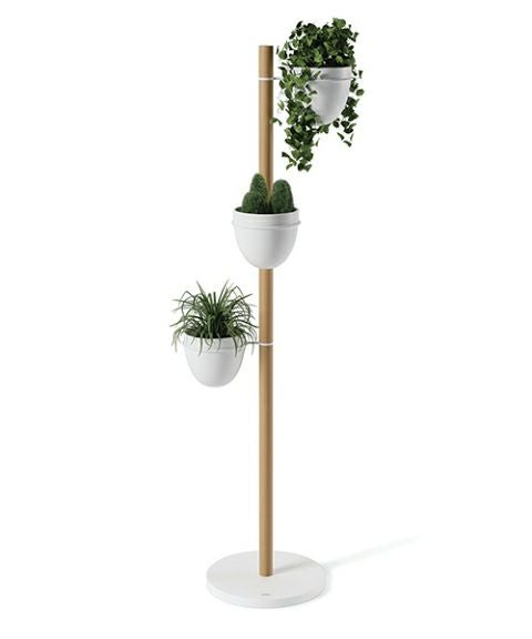 パウダーコーティングされたメタルと天然のブナ材で作られたフローリィスタンド プランターには、植物をしっかりと固定するために重量のあるベースと頑丈なポールで作られています。