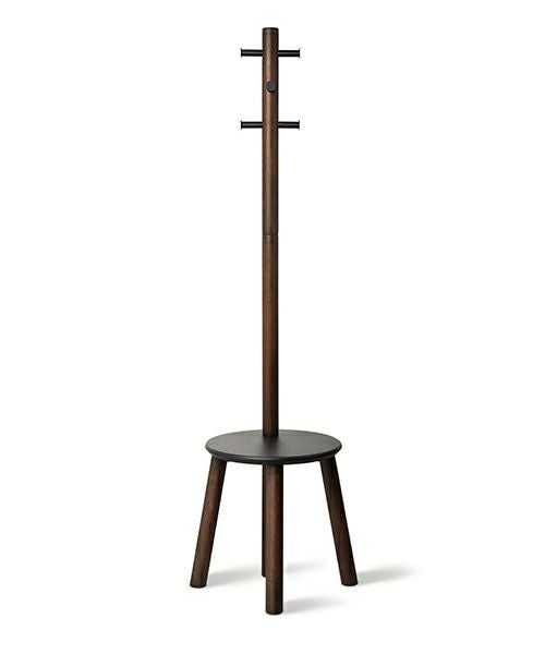 コートラックとスツールを融合したデザイン:従来のコートラックと異なり、バッグや植物を置いたり、または座って靴を履くときに便利なスツールが一体となったユニークなコートラックです。