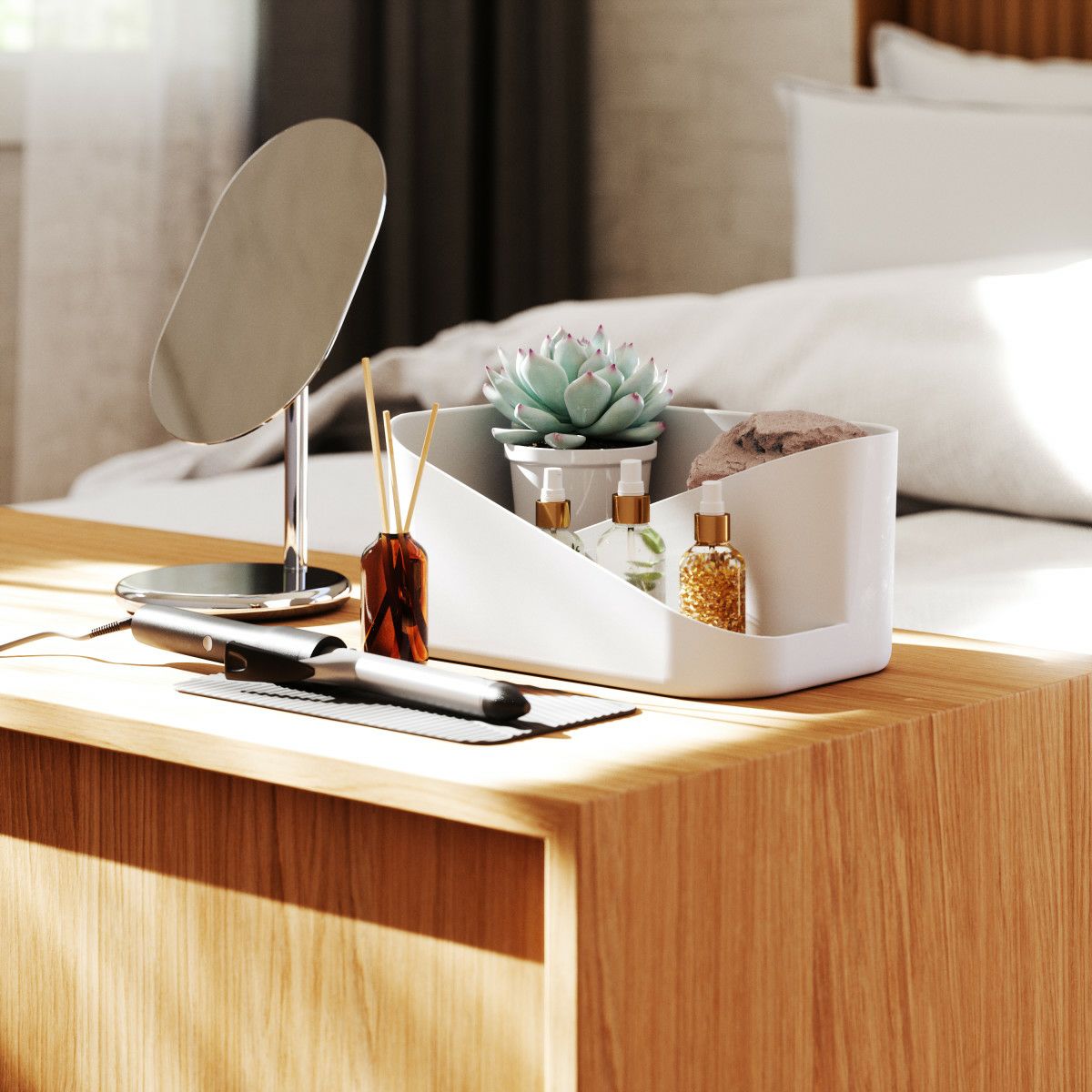 ヘアブラシなど様々な物を取り出し易い様、広口に設計されており、出し仕舞いがとても楽です。