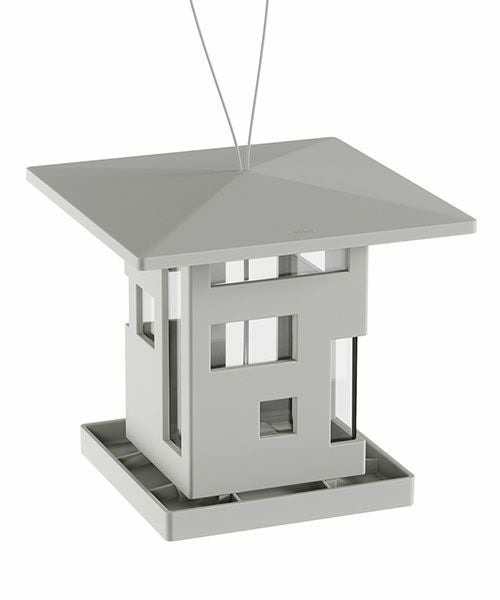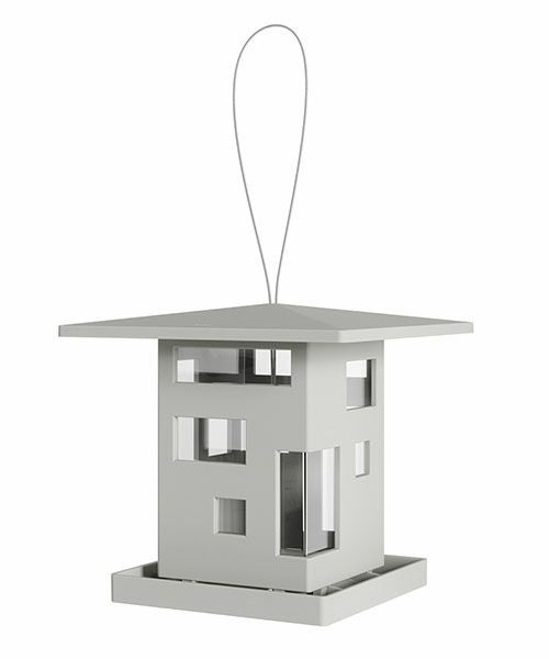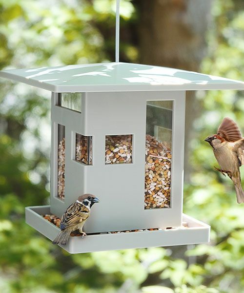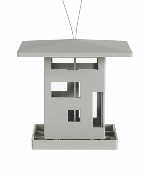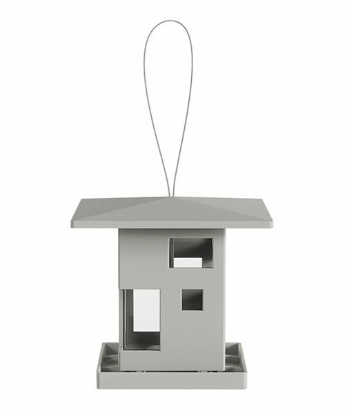 家の形をした鳥のエサ台です。窓から餌が少なくなっていることを簡単に確認する事ができます。 足場があるので鳥や小動物が餌を食べやすい設計になっています。 底の穴から餌が出て中の食べ物を取ることが出来ます。 屋外でも使用できるようにスチールケーブルが付属しています。 屋根の形をした上蓋を開いて、簡単に餌の補充ができます。内容量は約2Lです。 また、屋根は張り出しのデザインになっているので雨しずくも下に落としやすく渇きも早いのが特徴です。