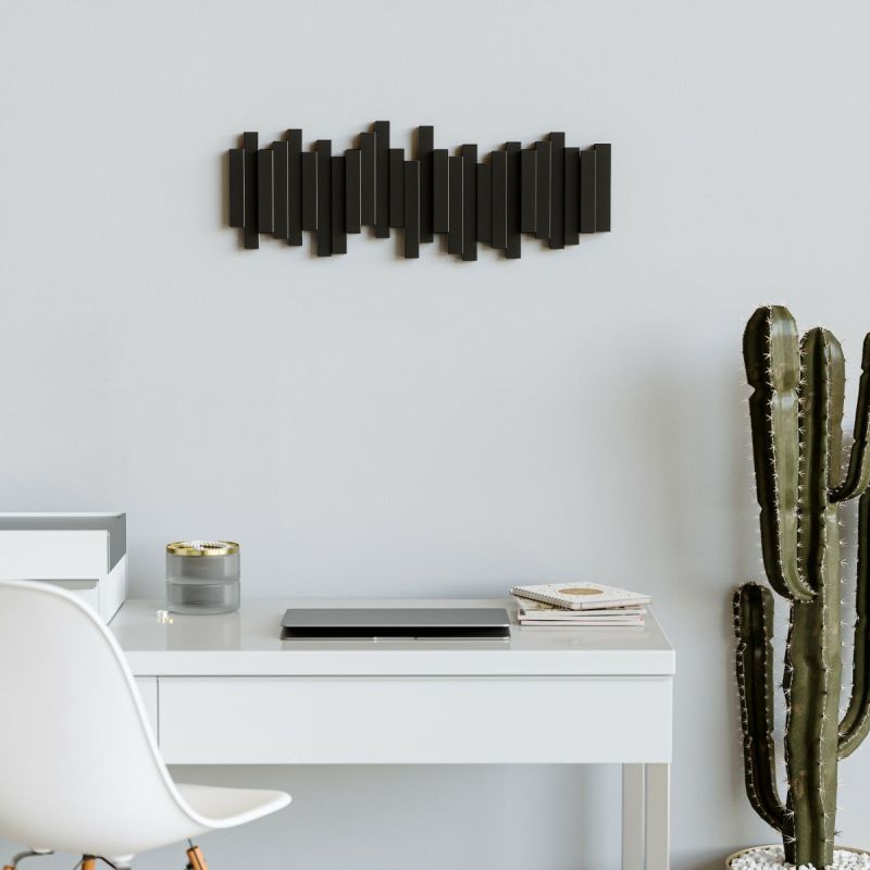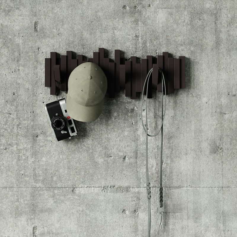 枝やスティックを横に並べたようなミニマルな形状で、壁掛けでも圧迫感ゼロ。