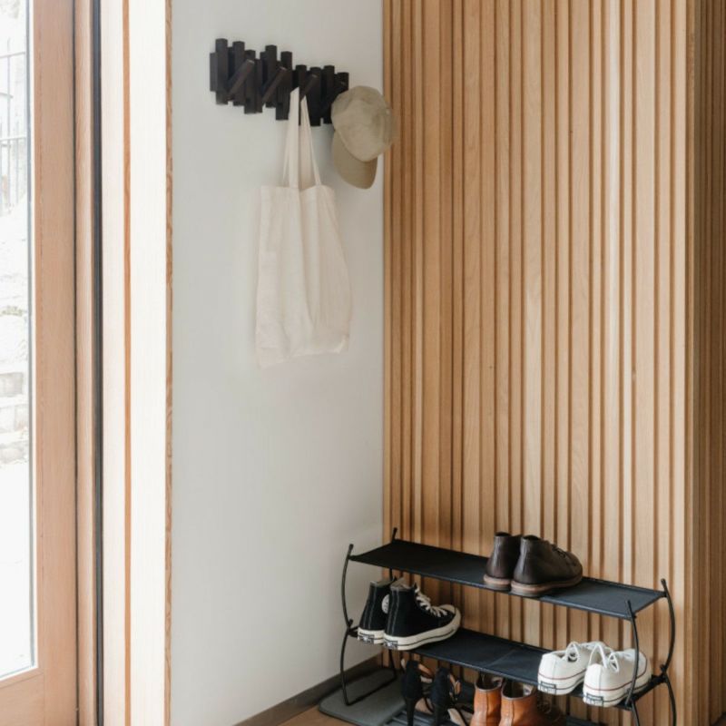 使わないときはフックをたたんでおけて、飾りのようなスッキリした佇まいに。玄関・寝室・廊下・キッチンなど、生活のさまざまなシーンで空間を整えながら便利に使えます。