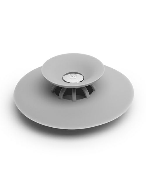 Alan Wisniewski & Anthony Keelerデザイン。 風呂栓とヘアキャッチャーがワンタッチで切り替え可能なバスグッズ。 中央のボタンを押せば上部パーツが開いて水が流れ、ヘアキャッチャーになります。ひっくり返った縁を押して閉じれば風呂栓になります。 ユニットバスでの使用もおすすめです。