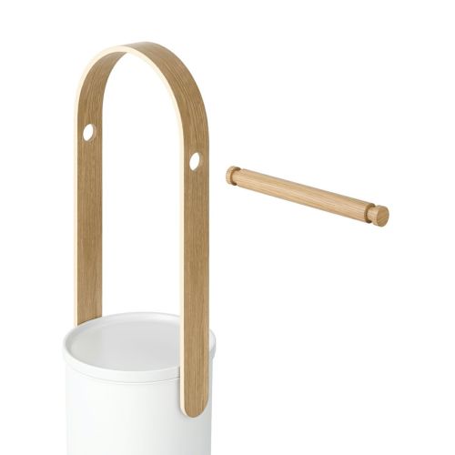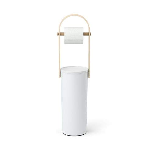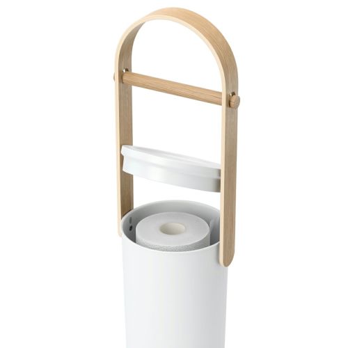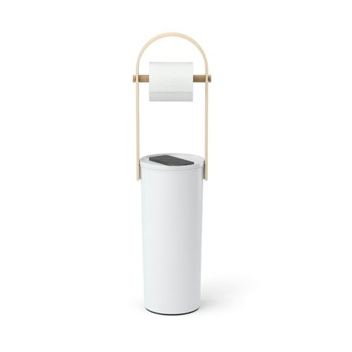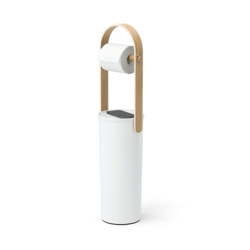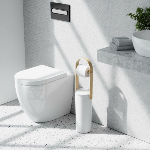 Bellwood トイレットペーパーホルダー&リザーブは、デザイン性と機能性を兼ね備えた構造で、バスルームをより便利で洗練された空間に仕上げます。モダンな雰囲気にぴったりのこの自立型ホルダーは、トイレットペーパーロールを最大3個収納可能。さらに、上部の内蔵トレイにはスマートフォンや鍵、観葉植物、芳香剤などを置くことができ実用性も抜群です。再生可能な木材とリサイクルプラスチックを使用しており、地球環境に優しい持続可能な商品でもあります。軽量で持ち手が付いているので移動が簡単にできて、トイレ内の掃除もしやすく便利なアイテムです。人気なBellwood コレクションの他のアイテムと組み合わせると、統一感のあるインテリアになります。