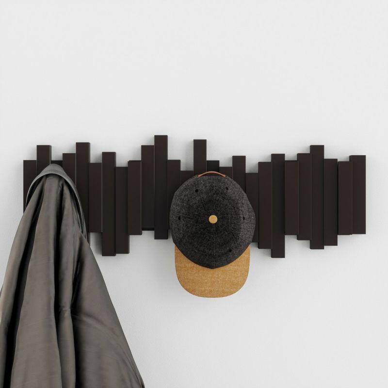 使わないときはフックをたたんでおけて、飾りのようなスッキリした佇まいに。玄関・寝室・廊下・キッチンなど、生活のさまざまなシーンで空間を整えながら便利に使えます。